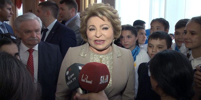 أكدت رئيسة مجلس الاتحاد الروسي فالنتينا ماتفيينكو استمرار روسيا في دعمها الثابت والمستمر للشعب السوري في حربه ضد الإرهاب منوهة بأهمية مشاركة أطفال سورية زملاءهم من روسيا وبلدان أخرى الاحتفال باليوم العالمي لحماية الأطفال.