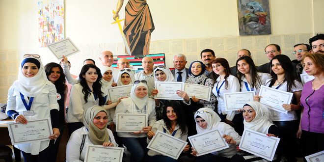 وكرمت جامعة دمشق الطلاب المشاركين في المبادرة وعددا من أساتذة الجامعة الأحياء والمتوفين الذين كان لهم الفضل في إنجاز هذا المشروع.