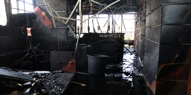 وأوضح قائد فوج اطفاء دمشق العميد عبد الهادي ضاهر في تصريح لمندوبة سانا أن حريقا نشب في الطابق الثالث من برج دمشق التجاري بسبب ماس كهربائي وتم احتواء الحريق واخماده.