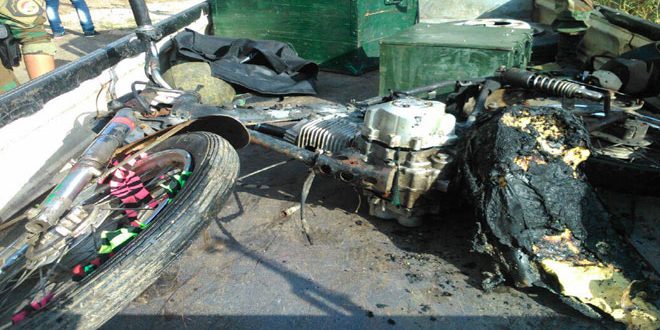 وأفاد مصدر في قيادة شرطة اللاذقية لمراسل سانا بأن ” إرهابيا يقود دراجة نارية قام بتفجير نفسه بالقرب من جامع الخلفاء الراشدين في حي الدعتور” بمدينة اللاذقية.