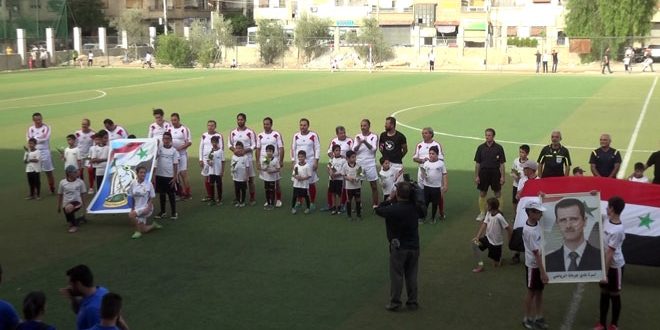 أقيم اليوم في نادي جرمانا الرياضي مباراة كرنفالية ودية بكرة القدم جمعت قدامى منتخب سورية الوطني مع قدامى لاعبي ريف دمشق وذلك بمناسبة تطهير القسم الجنوبي من الغوطة الشرقية والانتصارات التي يحققها بواسل الجيش العربي السوري في حربه ضد التنظيمات الإرهابية المسلحة.
