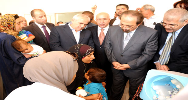 وأشار النايف خلال تفقده الخدمات الصحية المقدمة للأسر المهجرة والعائدة من بلدة عرسال والمقيمة في مركز الاقامة المؤقتة بضاحية قدسيا إلى أن الوزارة خصصت عيادات طبية متنقلة وفرقاً صحية لضمان تقديم الخدمات المثلى للأهالي المتضررين جراء إرهاب التنظيمات الارهابية المسلحة.