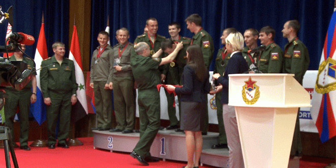 اختتمت في العاصمة الروسية موسكو اليوم الدورة الرياضية للمسابقات الدولية في ألعاب الخماسي العسكري “سيزم” التي شارك فيها 60 لاعبا ولاعبة من فرق عسكرية لخمس دول هي سورية وروسيا والنمسا وهولاندا وبيلاروس.