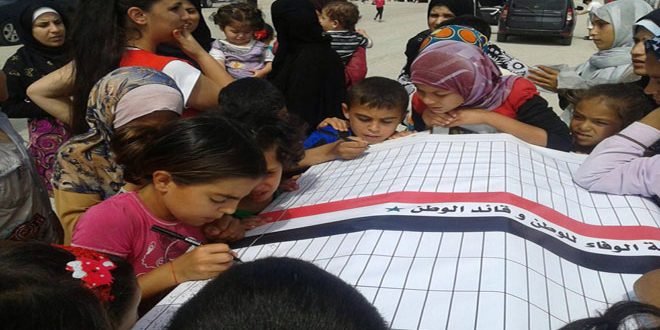 وأوضح أن الرسالة التي بوشر بكتابتها عام 2012 شارك فيها حتى الآن نحو أربعة ملايين مواطن من مختلف شرائح المجتمع كتبوا على طول 8000 متر رسائل المحبة والسلام والدعم للجيش العربي السوري وقائد الوطن وطالبوا فيها الدول الداعمة للإرهاب بالكف عن التدخل بشؤون سورية الداخلية.