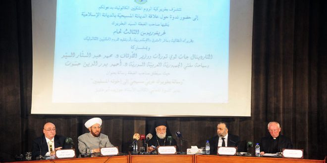 وشدد لحام على “مسؤولية المسلمين ولاسيما في الشرق العربي بأن يحاموا عن الإسلام ويحموا الإسلام من هذه التيارات وأن يبينوا أن هذه التيارات التكفيرية وما ينشر يومياً في العديد من وسائل الإعلام ومن الفضائيات من تعاليم تدعو إلى القتل والإرهاب ليست من الإسلام”.
