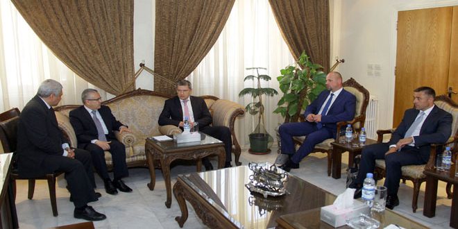 بحث وزير الموارد المائية الدكتور كمال الشيخة اليوم مع سفير جمهورية بيلاروس بدمشق الكسندر بانوماريوف والمدير العام لشركة غيدروديناميكا البيلاروسية ميخائيل سوبوتن إمكانيات توسيع مجالات التعاون في قطاع الموارد المائية.
