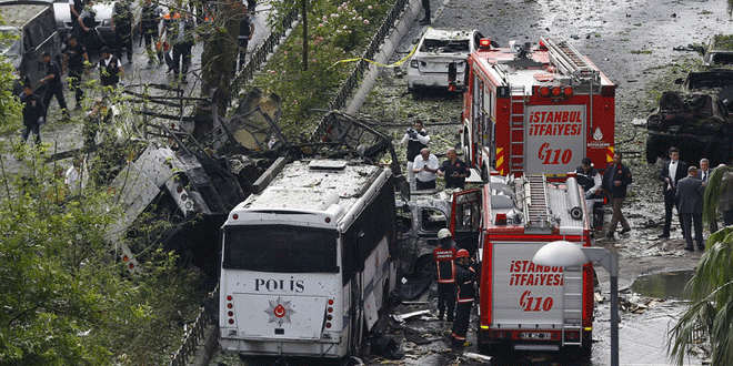وشهدت مدينة اسطنبول وغيرها من المدن التركية تفجيرات عدة أسفرت عن مقتل وإصابة العشرات ويتهم النظام التركي عادة تنظيم “داعش” أو حزب العمال الكردستاني بالمسؤءولية عن الهجمات علما أنه يدعم الإرهابيين في سورية بكل ما يستطيع.