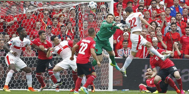فاز المنتخب السويسري بهدف وحيد على نظيره الألباني اليوم في الدور الأول من مباريات المجموعة الأولى لبطولة كأس الأمم الأوروبية بفرنسا وسجل المدافع فابيان شار الهدف الوحيد للمباراة في الدقيقة الخامسة من ضربة رأس.