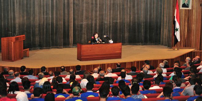وفي ندوة أقامها فرع دمشق لاتحاد شبيبة الثورة بمناسبة الذكرى السادسة عشرة لرحيل القائد المؤسس حافظ الأسد قالت الدكتورة شعبان “إن النقابات والمؤسسات التي أسسها القائد حافظ الأسد لاتزال مستمرة وجميعها برهنت خلال الأزمة أنها بنيت على أسس عقائدية ووطنية وعربية تليق بسورية وتاريخها وحضارتها”.