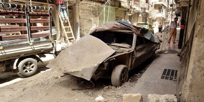 وكان استشهد شخص وأصيب 5 آخرون بجروح جراء اعتداء المجموعات الإرهابية التابعة لتنظيم “جبهة النصرة” بالقذائف الصاروخية والطلقات المتفجرة ورصاص القنص على احياء الحمدانية والشيخ مقصود وصلاح الدين وشيحان بمدينة حلب.