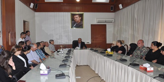 أكد محافظ حمص طلال البرازي أهمية تقديم كافة أشكال الدعم والرعاية لأسر الشهداء والجرحى المتضررين من اعتداءات التنظيمات الإرهابية المسلحة.