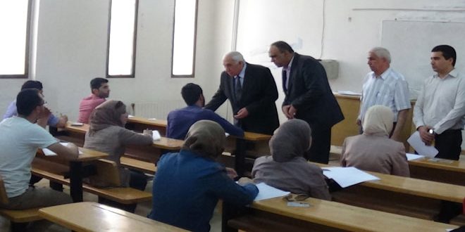 تفقد محافظ درعا محمد خالد الهنوس وكمال العتمة أمين فرع درعا لحزب البعث العربي الاشتراكي سير الامتحانات في كليات درعا التابعة لجامعة دمشق.
