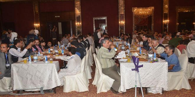 أقام اتحاد الجمعيات الخيرية بحلب بالتعاون مع مديرية السياحة مأدبة إفطار رمضانية لذوي الاحتياجات الخاصة في فندق شهباء حلب.