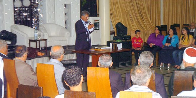 ركز لقاء حواري نسقه الرحالة والكاتب عدنان عزام وأقيم في فندق العامر بمدينة السويداء بعنوان “وطن وآفاق الخروج من المحنة” حول دور المواطن في التصدي للحرب الكونية على سورية والخروج من الأزمة التي يعاني منها المواطن منذ أكثر من خمس سنوات.