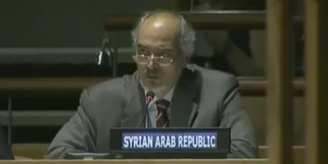 وتابع الجعفري “بعيدا عن البروباغاندا التي يحاول البعض تسويقها بأن الحكومة السورية تعيق وصول المساعدات الإنسانية تثبت الوقائع على الأرض من جديد عكس ذلك تماما حيث وافقت الحكومة مؤخراً على 16 طلبا من أصل 17 طلبا قدمتها الأمم المتحدة لإدخال قوافل مساعدات إنسانية مشتركة إلى المناطق الساخنة في إطار خطة شهر حزيران فقط والحكومة السورية ملتزمة بالاستمرار في هذا النهج المتعاون مع الامم المتحدة طالما أنه يتفق والمبادئ التوجيهية للأمم المتحدة الخاصة بإيصال المساعدات الإنسانية وفقا لقرار الجمعية العامة رقم 46/180 وطالما أنه يضمن سلامة وأمن العاملين الإنسانيين ووصول المساعدات إلى مستحقيها فعلا وليس إلى الإرهابيين والمرتزقة”.