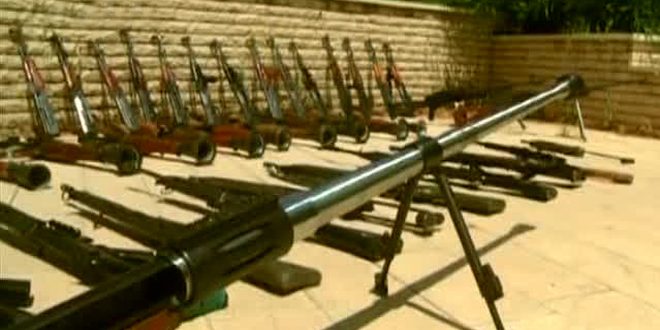 داهمت الجهات المختصة وكراً للمجموعات الإرهابية المسلحة في ريف دمشق كانت تستخدمه مستودعاً للأسلحة وعثرت بداخله على كمية كبيرة من بينها رشاشات أمريكية الصنع.
