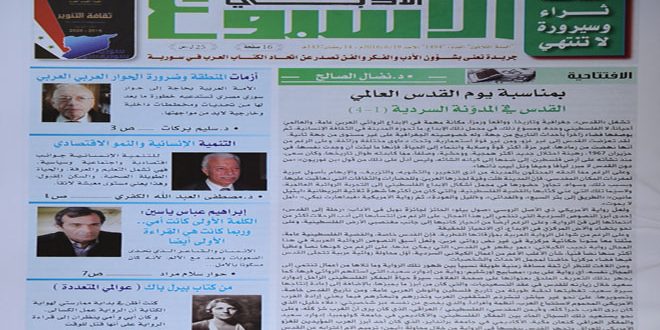 مقالات في الأدب والنقد ونتاجات إبداعية متنوعة تضمنها العدد الجديد من جريدة الأسبوع الأدبي الناطقة باسم اتحاد الكتاب العرب.