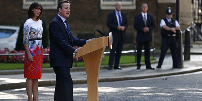 وقال كاميرون في كلمة ألقاها في مقره في لندن إن “البريطانيين اتخذوا قرارا واضحا واعتقد أن البلاد بحاجة لقائد جديد ياخذها في هذا الاتجاه” موضحا أنه سيبقى في منصبه حتى الخريف إلى حين تعيين من سيخلفه خلال مؤتمر حزب المحافظين في تشرين الأول القادم.