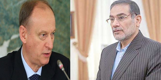 بحث أمين مجلس الأمن القومي الروسي نيكولاي باتروشيف مع أمين المجلس الأعلى للأمن القومي الإيراني علي شمخاني مسائل الأمن الإقليمي والدولي والوضع في سورية.