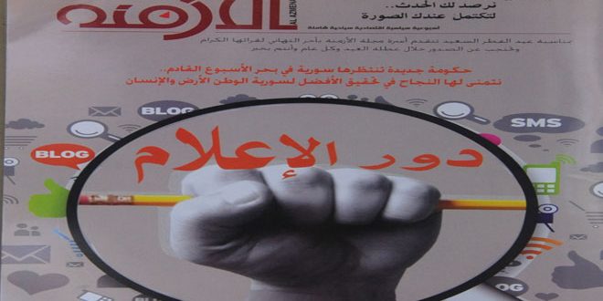 أما محسن حسن فكتب مقالا بعنوان “الجيش العربي السوري والإرهاب” بين فيه أن الجيش العربي السوري تصدى للإرهاب دفاعا عن الوطن وذودا عن الإسلام وعاهد الوطن وصدق بما بايع وعاهد ووفى بما وعد ووقف في وجه طوفان من النار صامدا مدافعا لم يبخل بالدماء ولم يضن بالعطاء والشهداء.