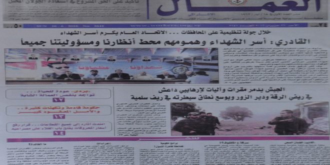 وتضمن العدد أيضا عددا من رسوم الكاريكاتير التي انتقدت ظواهر الفساد إضافة إلى تحقيقات حول غلاء أسعار السلع وعن شركات الاسمنت وشركة بردى للصناعات المنزلية وغيرها إضافة إلى أخبار ونشاطات الاتحاد العام لنقابات العمال واتحادات العمال في المحافظات.