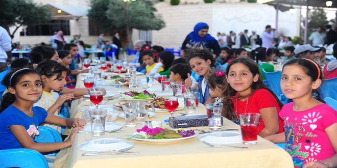 تجسيدا لمعاني الخير والتعاون والتكافل في شهر رمضان المبارك أقامت وزارة الشؤون الاجتماعية مأدبة افطار في مدينة الشباب بالمزة مساء اليوم تكريما للأطفال الأيتام في مدينة دمشق بحضور عدد من الفعاليات الاجتماعية والأهلية ومجموعة من الفنانات السوريات.