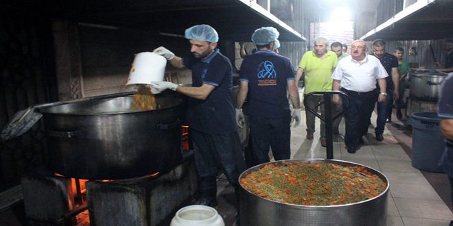 وخلال تفقده اليوم عددا من المطابخ الخيرية العاملة في مدينة حلب التي تقوم بتأمين الوجبات الساخنة يوميا لشريحة واسعة من المواطنين اطلع المحافظ على مراحل تحضير الطعام وآلية التوزيع والفئات المشمولة به مؤكدا أهمية العمل الإغاثي والخيري ولاسيما خلال الشهر الفضيل.