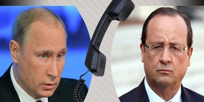بحث الرئيس الروسي فلاديمير بوتين في اتصال هاتفي مع نظيره الفرنسي فرانسوا هولاند اليوم الوضع في إقليم ناغورني قره باغ وأوكرانيا.