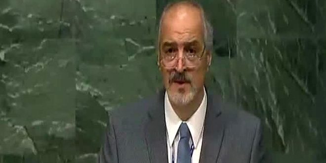 وتابع الجعفري.. “إن هذه القناعة تدفعنا للعمل الدؤوب والتنبيه المستمر لخطر الإرهاب على جميع الدول الأعضاء وتقديم المعلومات المتعلقة بمسببات وأبعاد هذا التهديد والدوافع والجهات التي تقف وراءه والمطالبة دون كلل أو ملل بدور فاعل للأمم المتحدة وهيئاتها الرئيسية والفرعية المعنية بمكافحة الإرهاب في ظل الاحترام الصارم لمبادئ القانون الدولي وأحكام الميثاق والصكوك الدولية ذات الصلة ومنها استراتيجية الأمم المتحدة العالمية والقرارات المعتمدة في ختام عمليات الاستعراض وقرارات مجلس الأمن والابتعاد عن ازدواجية المعايير وعن تسييس قضايا مكافحة الإرهاب وعن الخلط المتعمد بين مكافحة الإرهاب من جهة وقضايا خلافية من جهة ثانية بهدف إعاقة تطبيق قرارات الأمم المتحدة الخاصة بمكافحة الإرهاب وإضعاف التزام الدول الأعضاء بتنفيذ هذه القرارات تحت ذرائع شتى”.