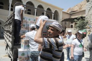 توزيع دفعة من المساعدات الشيشانية على الأهالي في مدينة معلولا بريف دمشق