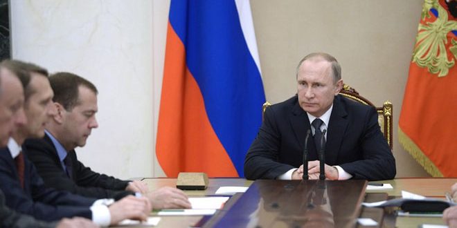 بحث الرئيس الروسي فلاديمير بوتين مع الأعضاء الدائمين في مجلس الأمن الروسي جملة من القضايا المتعلقة بالوضع في سورية والعلاقات مع حلف شمال الأطلسي “الناتو” و إجراءات تعزيز الثقة في السماء فوق بحر البلطيق.