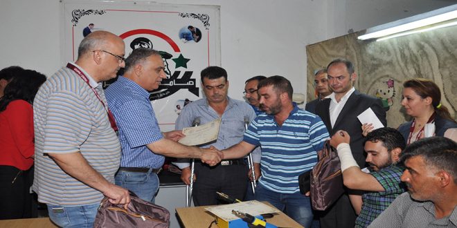 بدوره أشار رئيس مجلس ادارة جمعية صامدون رغم الجراح بحمص ياسر الشاويش إلى أن الدورة استمرت لأسبوعين واستفاد منها 21 من الجرحى لافتا إلى استمرارية مختلف النشاطات بالجمعية من خلال إقامة المزيد من الدورات المهنية في مختلف المجالات لإفساح الفرصة لمعظم الجرحى من الاستفادة وإكسابهم فرص عمل ودورا فاعلا بالمجتمع.