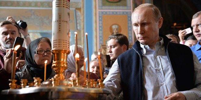 شارك الرئيس الروسي فلاديمير بوتين بصلوات أقيمت اليوم في دير فالام العتيق شمال روسيا على أرواح العسكريين الروس الذين قتلوا خلال مشاركتهم بمحاربة الإرهاب في سورية.