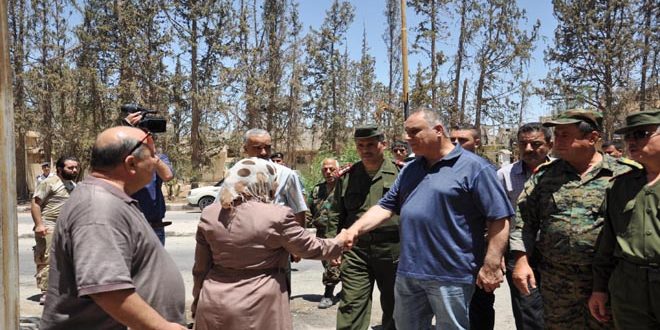أكد محافظ حمص طلال البرازي إن الورشات الفنية والخدمية تواصل عملها لتقديم الخدمات الأساسية من كهرباء ومياه واتصالات وتأهيل مدارس لأهالي تدمر العائدين إلى منازلهم بهدف تشجيع عودة المزيد منهم.