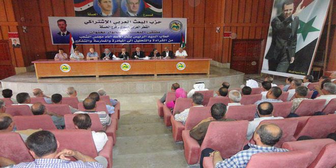 ودعا المجتمعون الى اعادة النظر بأسعار المحروقات وتعويض نقص مادة الدقيق في الأرياف مؤءكدين الوقوف خلف الجيش العربي السوري ودعمه في تصديه للإرهاب.