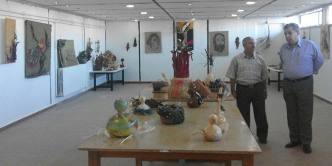 افتتح في المركز الثقافي العربي بمدينة شهبا بالسويداء معرض فني للفنانة ميسون أبو كرم ضم 40 لوحة وعملا يدوية من توالف البيئة.
