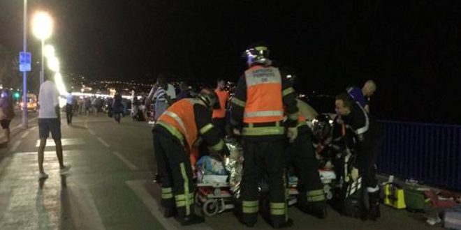 قتل80 شخصاً على الأقل وأصيب آخرون بجروح جراء قيام سائق شاحنة تبريد بدهس حشد من الناس في أحد شوارع مدينة نيس جنوب شرق فرنسا كانوا محتشدين مساء أمس لمشاهدة الألعاب النارية بمناسبة احتفالات العيد الوطني الفرنسي.