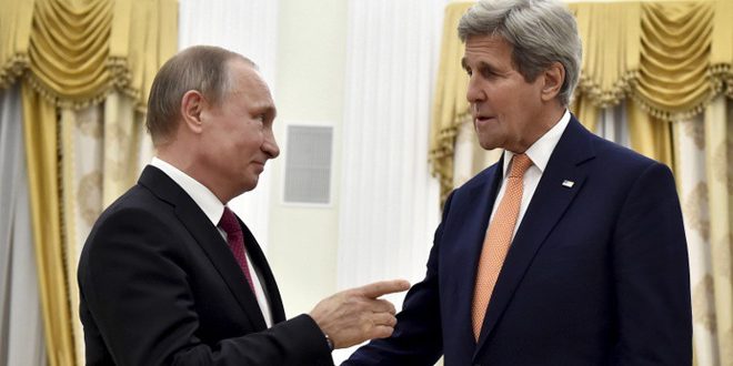 أعلن الكرملين أن مباحثات الرئيس الروسي فلاديمير بوتين ووزير الخارجية الأمريكي جون كيري امس تركزت على تداعيات الازمة في سورية ومختلف صيغ التعاون إزاءها “دون التطرق الى التعاون العسكري المباشر الروسي الأمريكي في محاربة الإرهاب” فيها.