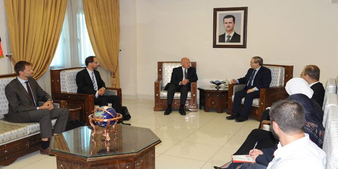 بحث الدكتور فيصل المقداد نائب وزير الخارجية والمغتربين خلال لقائه صباح اليوم السفير مانويل بسلر عضو المجلس الاتحادي السويسري للمساعدة الإنسانية رئيس وحدة المساعدة الإنسانية لدى وزارة الخارجية لسويسرية والوفد المرافق علاقات التعاون بين الجمهورية العربية السورية والاتحاد السويسري في المجال الانساني وخاصة تعزيز المساهمات السويسرية في التصدي للاحتياجات الانسانية التي فرضتها الأزمة في سورية .