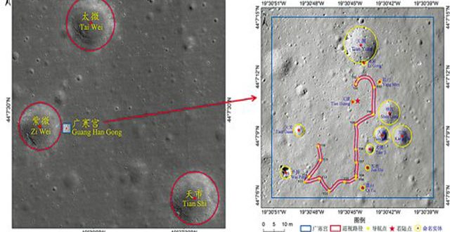 وكانت الصين ودول أخرى طلبت تسمية 22 موقعا في القمر بأسماء عناصر صينية ويرى نائب مدير المشروع الصيني لاستكشاف القمر أن “تسمية نتائج استكشاف الفلك التي حققتها الصين المعاصرة بأسماء فلكيين صينيين قدامى تعد تحية ووفاء لجهودهم”.