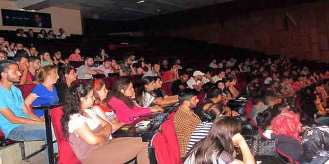 ضمن الفعاليات التي تقيمها لجنة المعسكرات لطلاب المعسكرات الانتاجية في جامعة تشرين اقامت كليتا الهندسة المعمارية والاداب ومديرية الانشطة الطلابية بالجامعة محاضرة ثقافية بعنوان “سورية نبع الحضارة” وذلك على مدرج الجامعة.