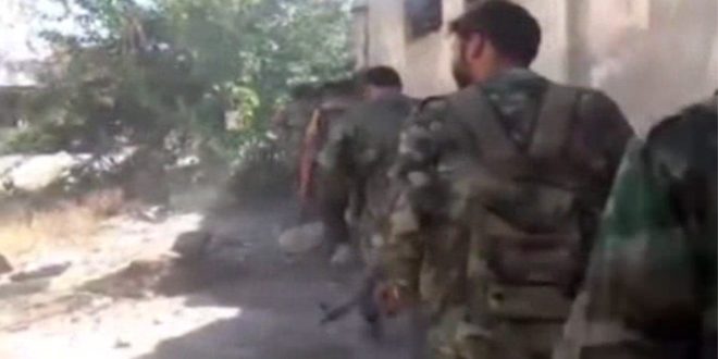 وبين المصدر أن وحدة من الجيش نفذت رمايات دقيقة على أوكار إرهابيي تنظيم “جبهة النصرة” في قرية جمرين شرق مدينة درعا بنحو 43 كم أدت إلى “القضاء على عدد منهم وتدمير ما بحوزتهم من أسلحة وذخيرة”.