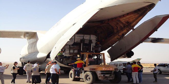 وصلت إلى مطار مدينة القامشلي مساء اليوم دفعة جديدة من المساعدات الغذائية المرسلة من برنامج الأغذية العالمي إلى محافظة الحسكة عبر الجسر الجوي للمواد الغذائية عن طريق مطار دمشق الدولي.