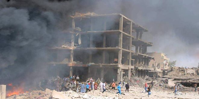 وذكر المصدر إن التفجير الإرهابي تسبب “باستشهاد وإصابة عشرات الأشخاص وتهدم عدد من المنازل السكنية وإلحاق أضرار مادية كبيرة في البنى التحتية بالحي”.
