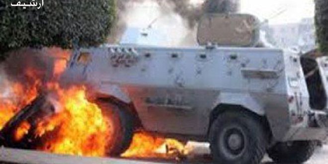 قتل جندي مصري وأصيب ثلاثة آخرون جراء انفجار عبوة ناسفة على الطريق الذي يستقلونه للوصول إلى مركزهم في السويس.