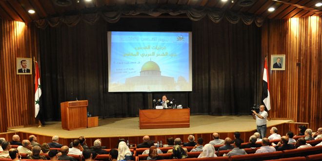 اعتبر الدكتور حسين جمعة عضو مجلس أمناء مؤسسة القدس الدولية”سورية” أن مدينة القدس تتقدم على غيرها من المدن والأماكن ” لأسباب طبيعية واجتماعية تاريخية ودينية ثقافية وأدبية” وقال “القدس رمز حضاري تاريخي غني بالدلائل والإشارات فهي الأرض المباركة والمقدسة”.