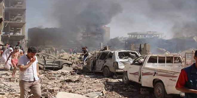وكان إرهابي انتحاري فجر سيارة مفخخة أمس في حي الغربية على الطريق الواصل بين دوار الهلالية ودوار مدينة الشباب فى الجهة الغربية لمدينة القامشلي ما أدى إلى ارتقاء عشرات الشهداء والجرحى.