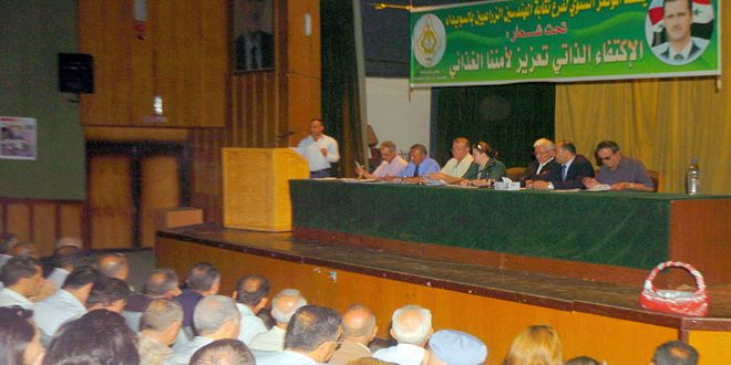 بدوره أشار أمين فرع السويداء لحزب البعث العربي الاشتراكي تكليفا اسماعيل الحناوي إلى المسؤولية الملقاة على عاتق المهندسين الزراعيين لتطوير الواقع الزراعي وأهمية الاستفادة من خبراتهم الفنية لحل المشكلات الزراعية.