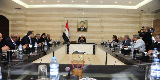 وتناول الاجتماع وضع رؤية جديدة للعمل المشترك بين الحكومة والفعاليات الاقتصادية والتجارية لتذليل الصعوبات وسد الثغرات الناتجة عن مفرزات وتداعيات الأزمة على البنى الاقتصادية وإمكانية مراجعة القوانين والتشريعات المتعلقة بالعملية الإنتاجية والتجارية وتقديم التسهيلات اللازمة لإنجاح عمل القطاع الخاص كونه أحد الروافع الأساسية للاقتصاد الوطني وعمل المناطق الصناعية وآليات منح إجازات الاستيراد وتفعيل دور المصارف الحكومية والخاصة.