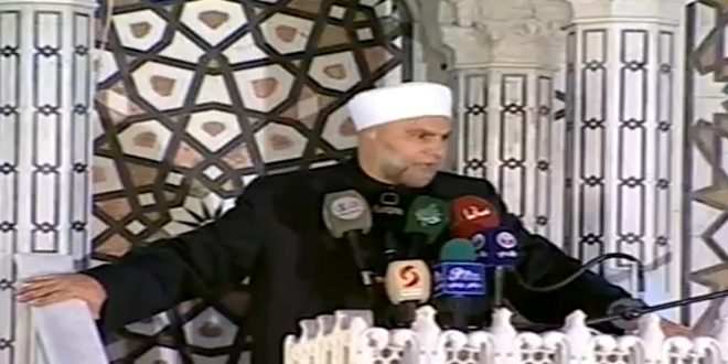 وأشار وزير الاوقاف الدكتور محمد عبد الستار السيد في خطبة الجمعة من جامع السيدة خديجة في طرطوس إلى أن تأكيد الرئيس الأسد في دعوته أمس على أن التسامح هو سيد الموقف “لا يكون إلا من قائد عظيم منتصر مؤمن بربه متأسيا بنبيه حريصا على شعبه ووطنه”.